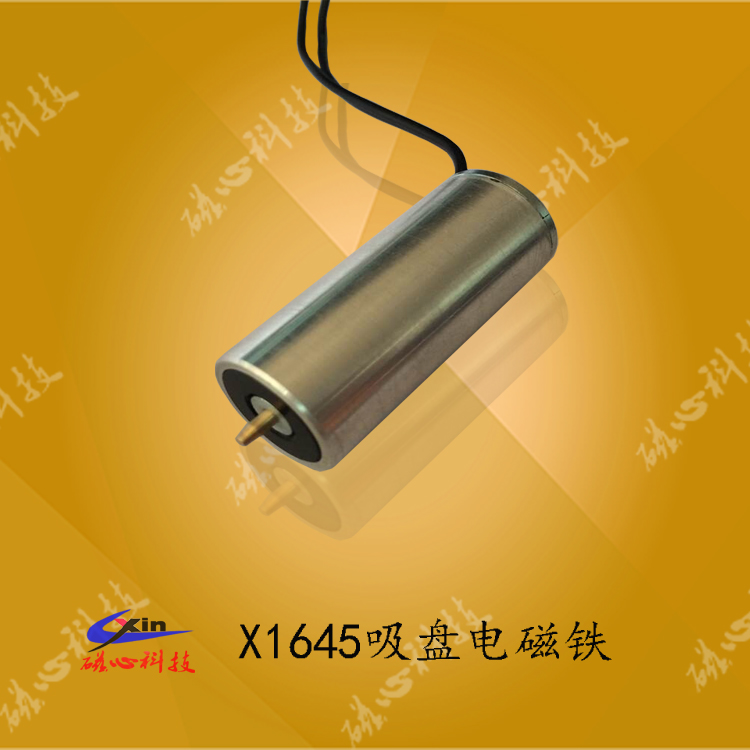 X1645吸盤式電磁鐵磁心科技針對機械手研發的一款新型的防剩磁微型吸盤電磁鐵,電磁鐵的直徑是16mm,高度是45mm。產品適用于吸力小,吸的工件小,而且不能有剩磁現象的機械手上。產品的吸力可以從10g--2kg,剩磁最小可以控制在3g以內。